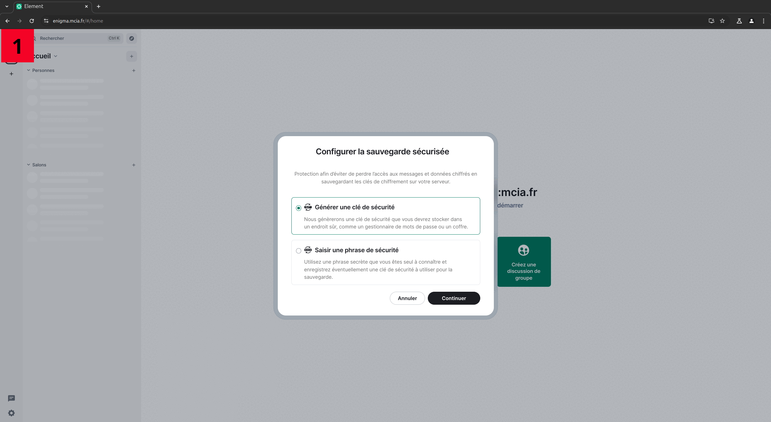 Ne passez pas cette étape car cette clé vous permettra de vous connecter depuis plusieurs clients et de lire les messages chiffrés.