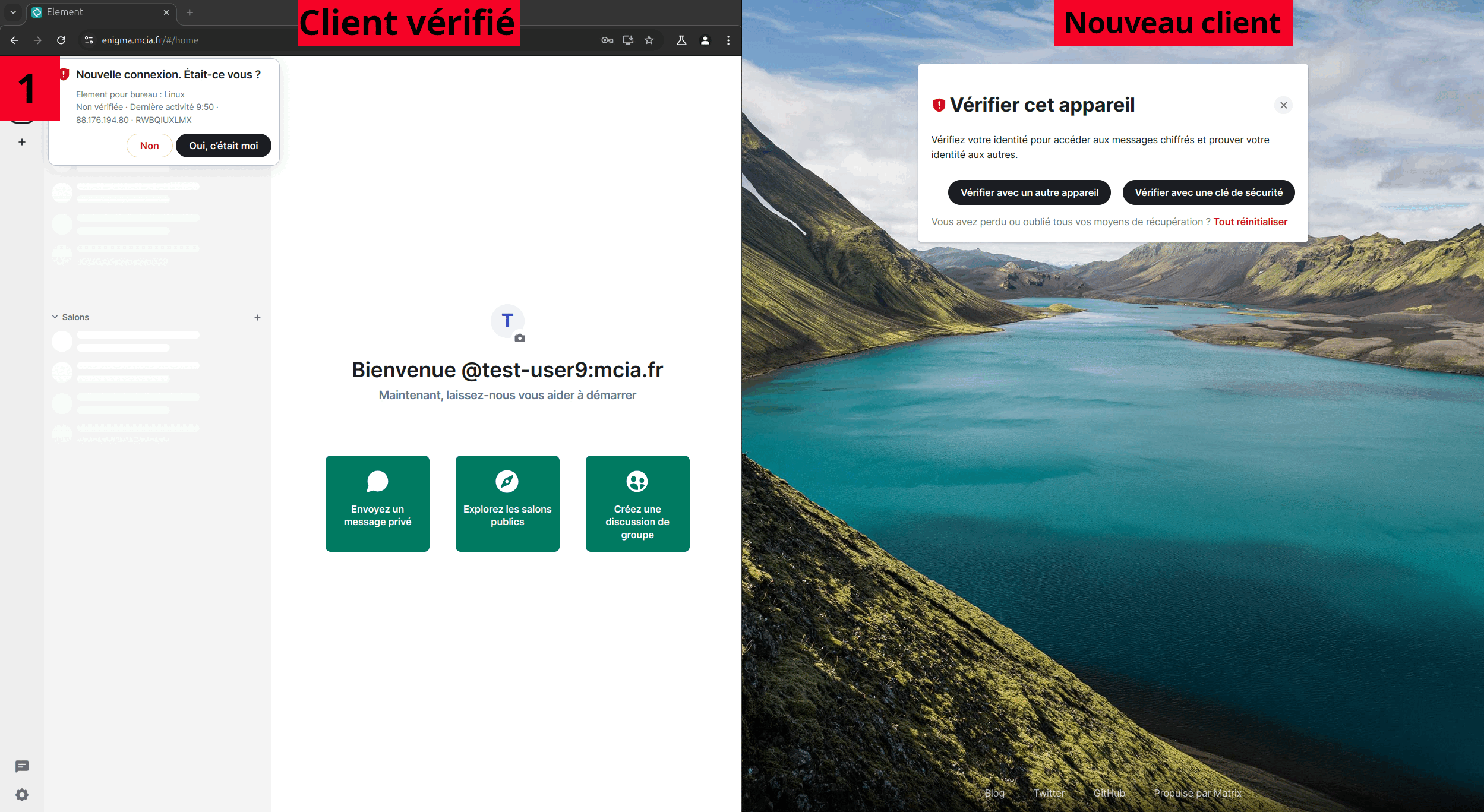 Si vous avez un client vérifié actif sur une autre machine, vous pouvez entamer une procédure de vérification simultanée qui permettra de vérifier le nouveau client.