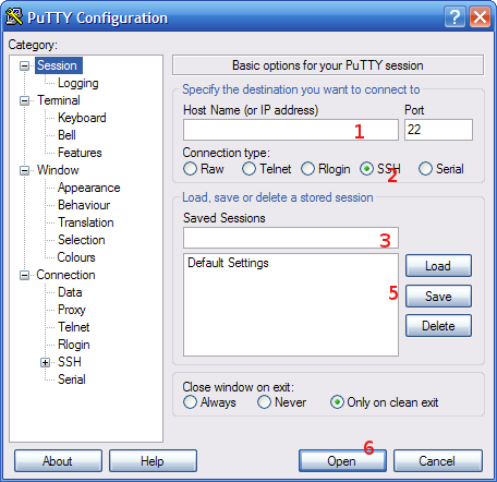 Quand vous lancez PuTTY pour la première fois, vous aurez cette fenêtre.